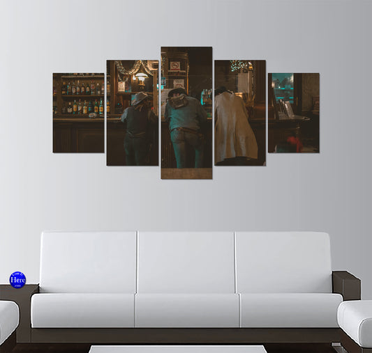 Cowboys Leaning at Old Saloon Bar 5 Panel Canvas Print Wall Art