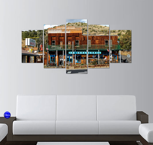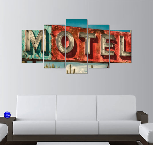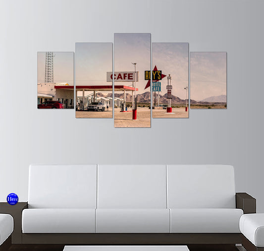 Vintage Motel and Bar Along Desert Road 5 Panel Canvas Print Wall Art